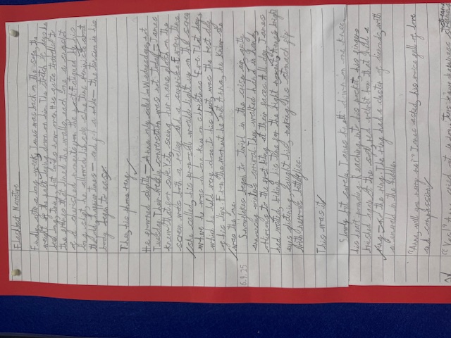 In English, we’ve been writing powerful narratives inspired by Mourning Dove. The children’s writing has been so moving, it brought tears to our eyes — tissues were definitely needed! Take a look at some of their incredible work below.
