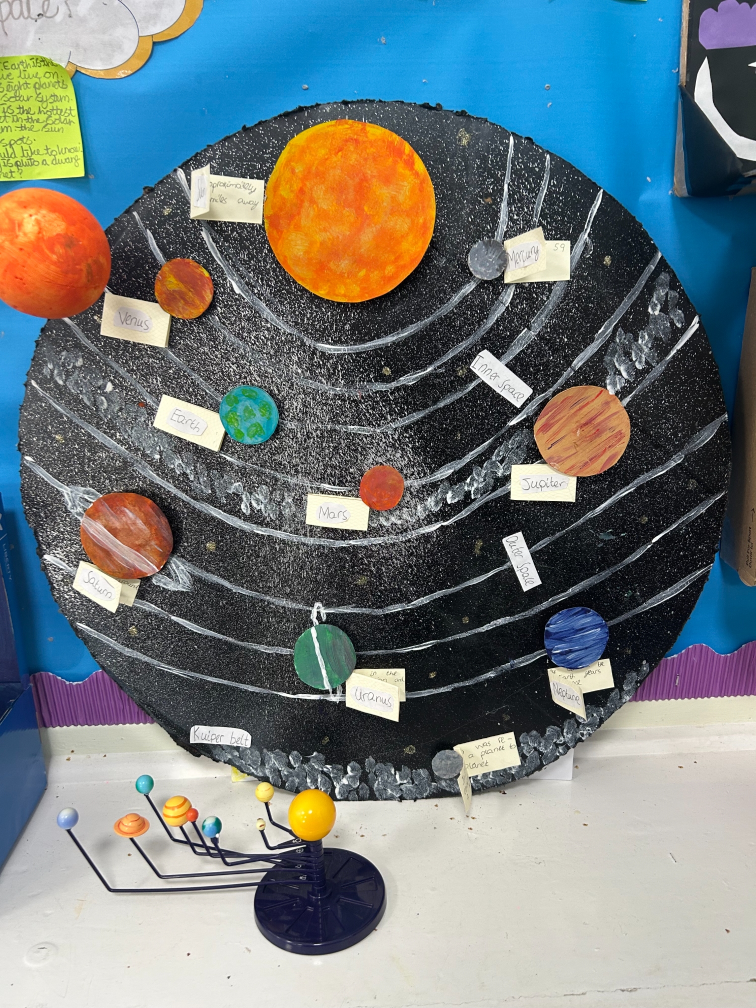 Year 5 have been on an exciting learning journey across a range of subjects. In Science, they have been exploring the fascinating topic of Earth and Space. The highlight of this topic was an exciting trip to the Astrodome, where pupils had the opportunity to deepen their understanding of the solar system in an immersive and engaging way. The visit sparked lots of curiosity, with children asking thoughtful questions and showing great enthusiasm throughout.