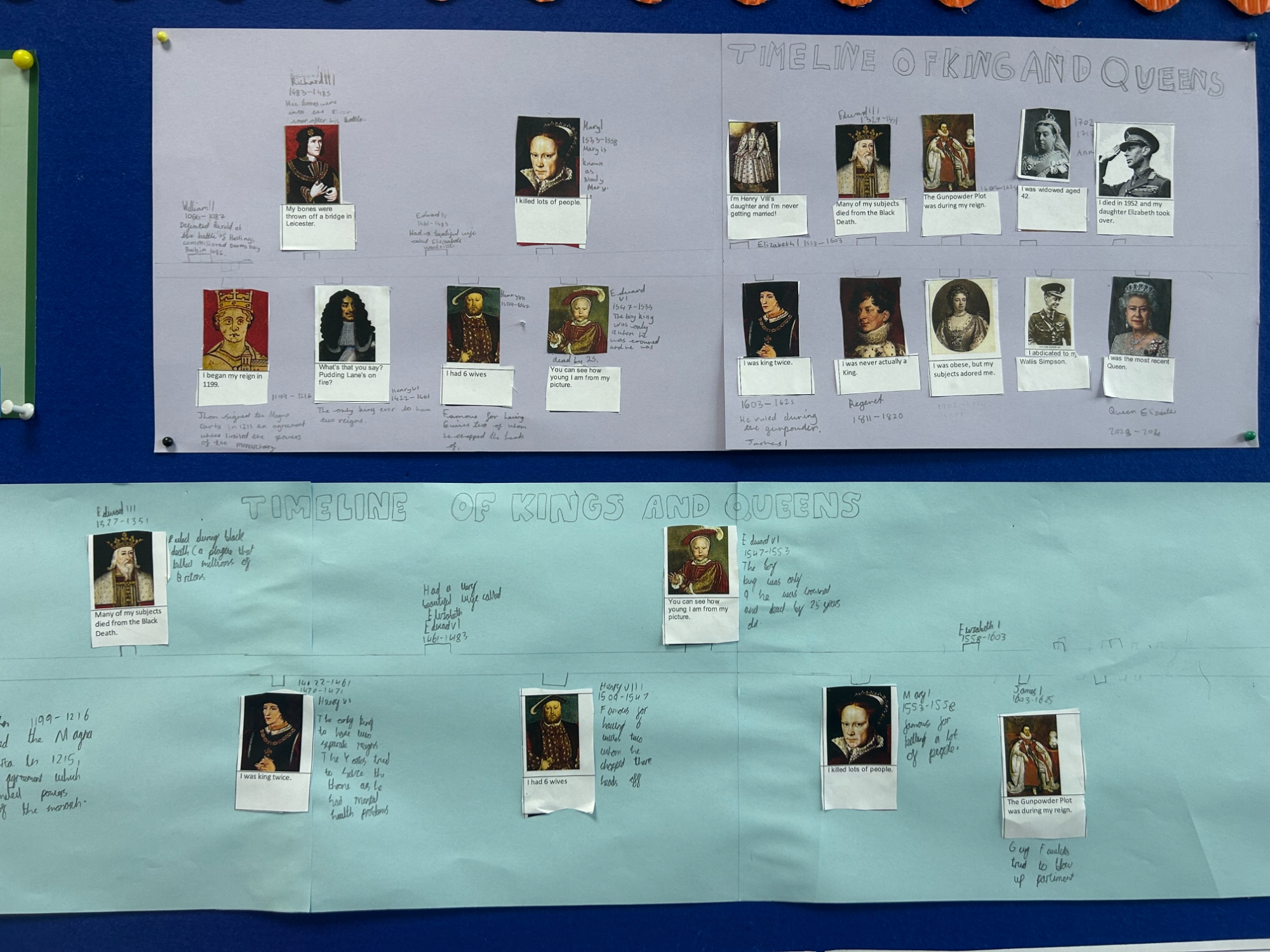 In History, Year 5 have been learning about the monarchs of Britain, discovering how different kings and queens have shaped the country over time. They have particularly enjoyed comparing the reigns of various monarchs and understanding how leadership and power have changed through the ages.