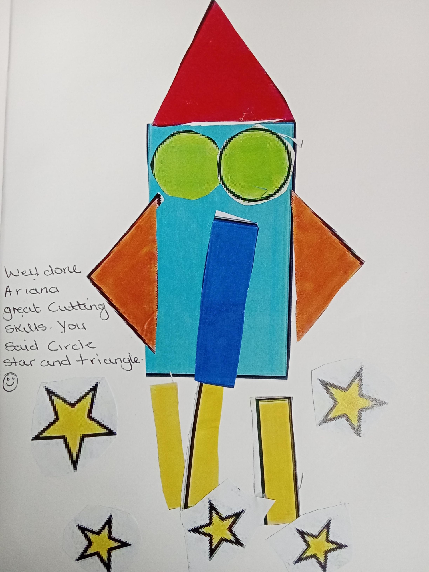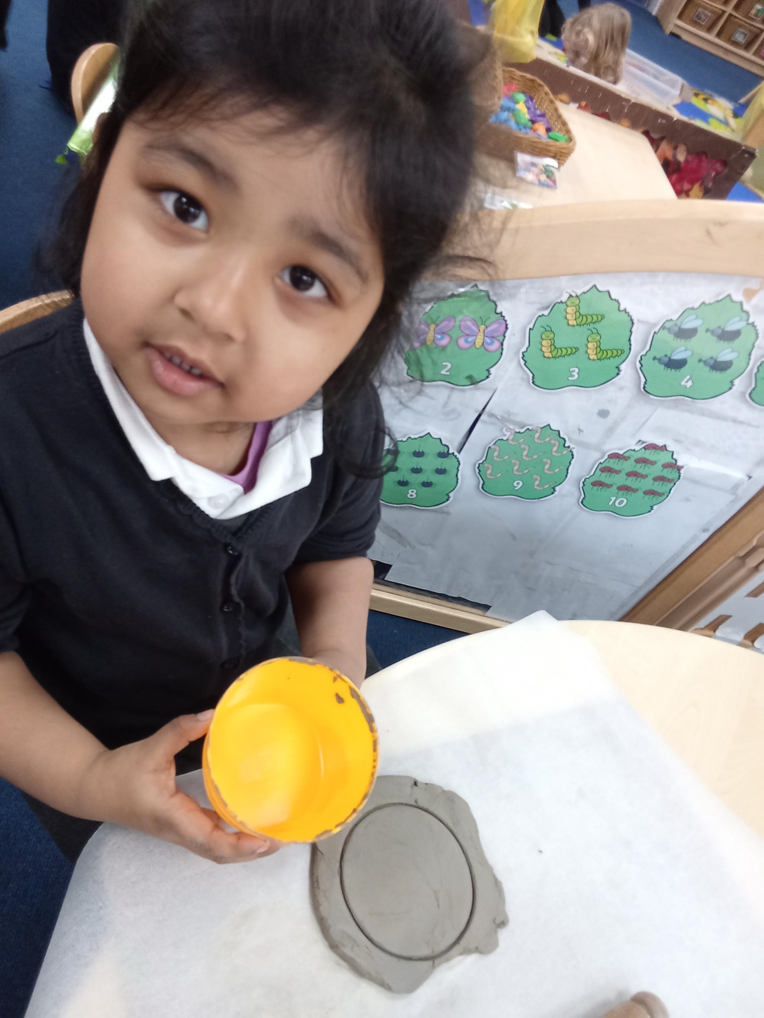 We have been looking at shapes and naming them when we made firework rockets and had fun using clay to make circles.