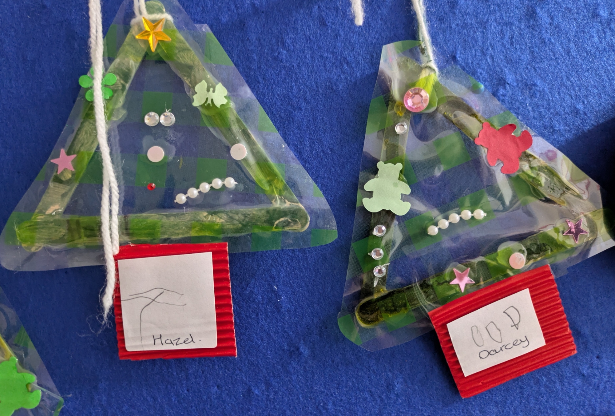 The children have worked so hard in all areas of their learning; it has been so much fun making and creating different shapes using different materials then turning them into fabulous decorations to take home. I am sure that they will tell you all about their see-through (transparent) triangles and how they counted different objects up to 5 to decorate them. Who would have thought making a Christmas tree could involve so much maths!